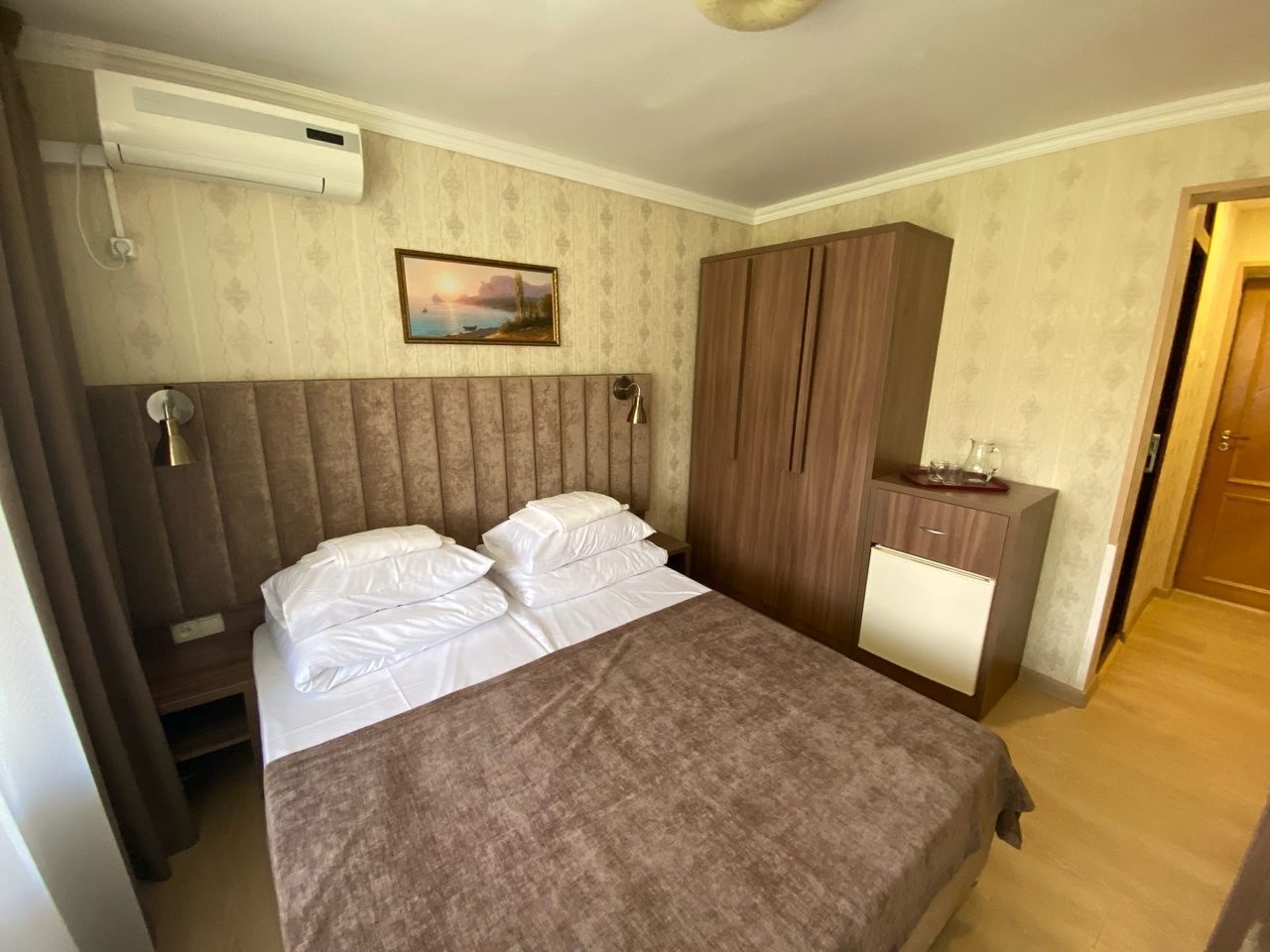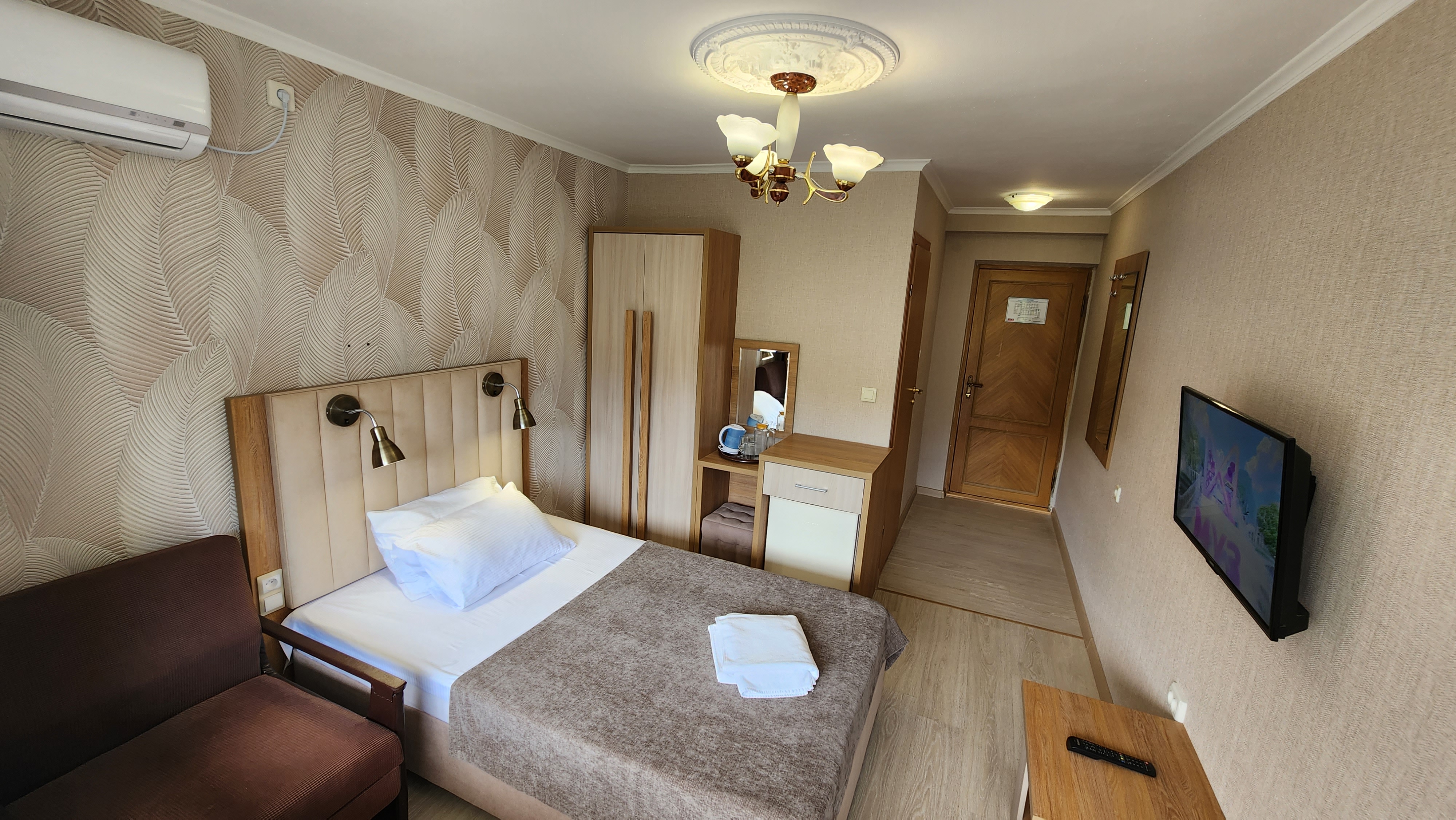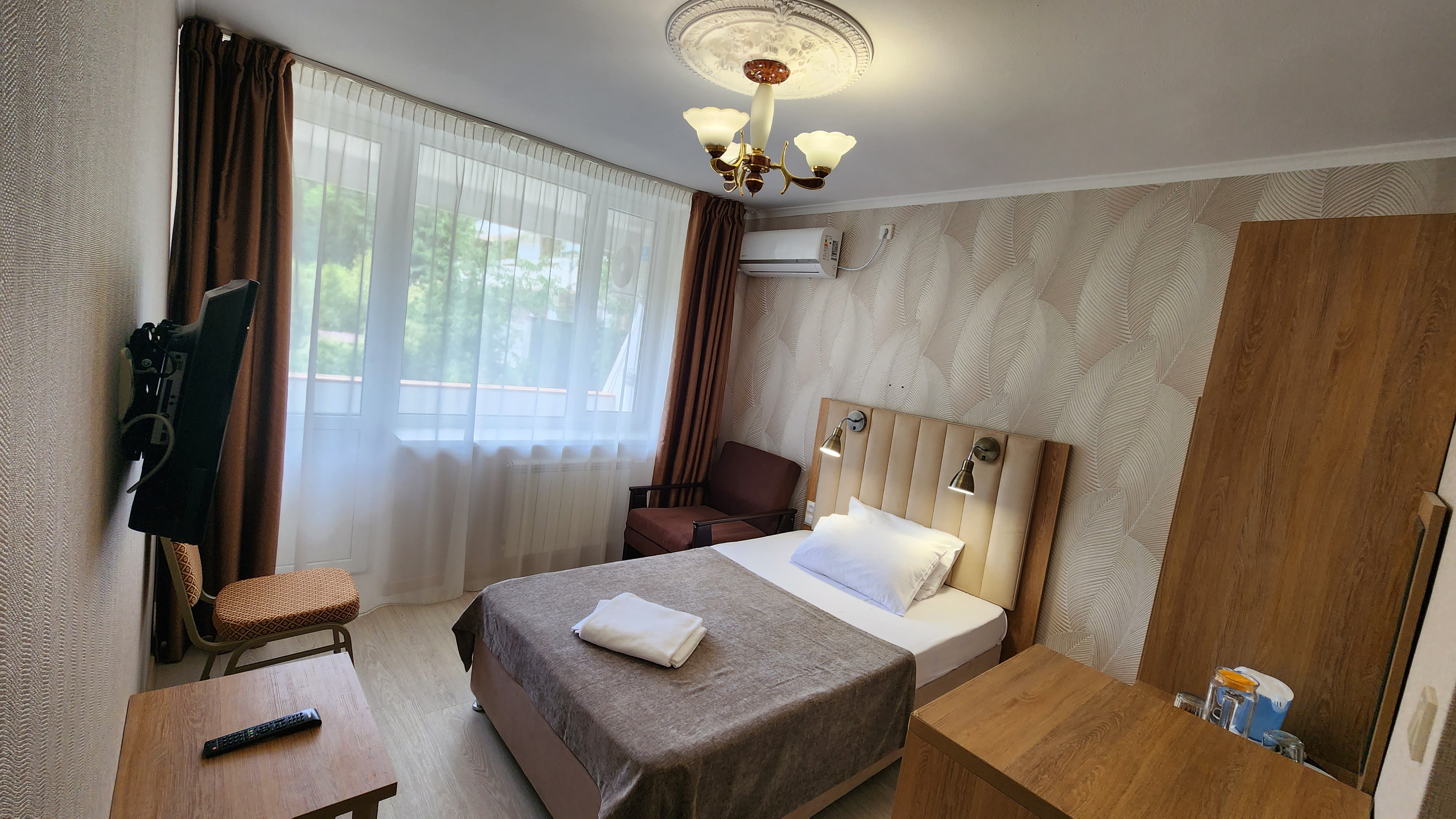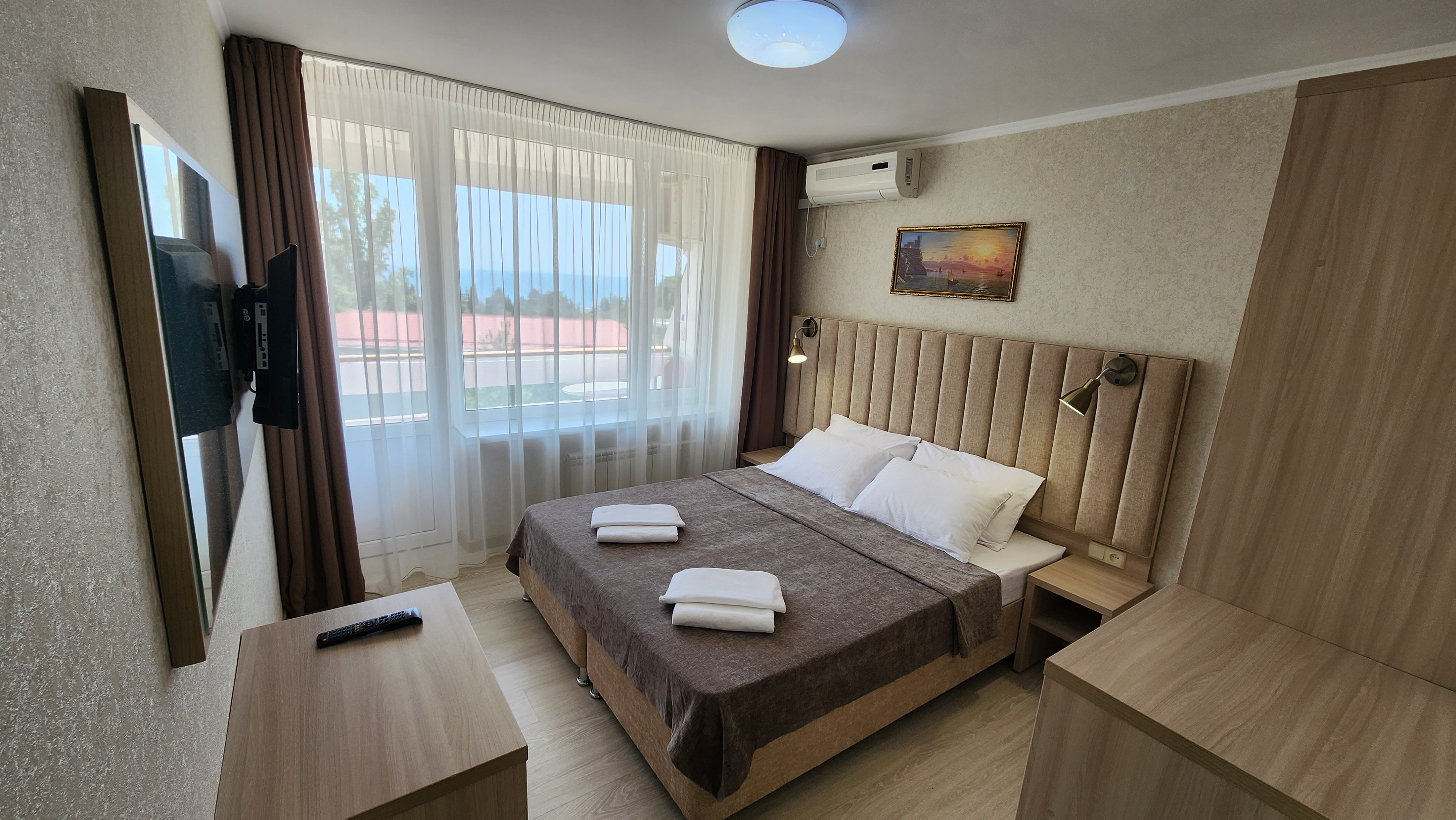 В 2020 году в корпусе № 2 был сделан капитальный ремонт корпуса и номеров: новая мебель и новые санузлы. Все однокомнатные номера — с двуспальными кроватями, доп. место-не ставится!