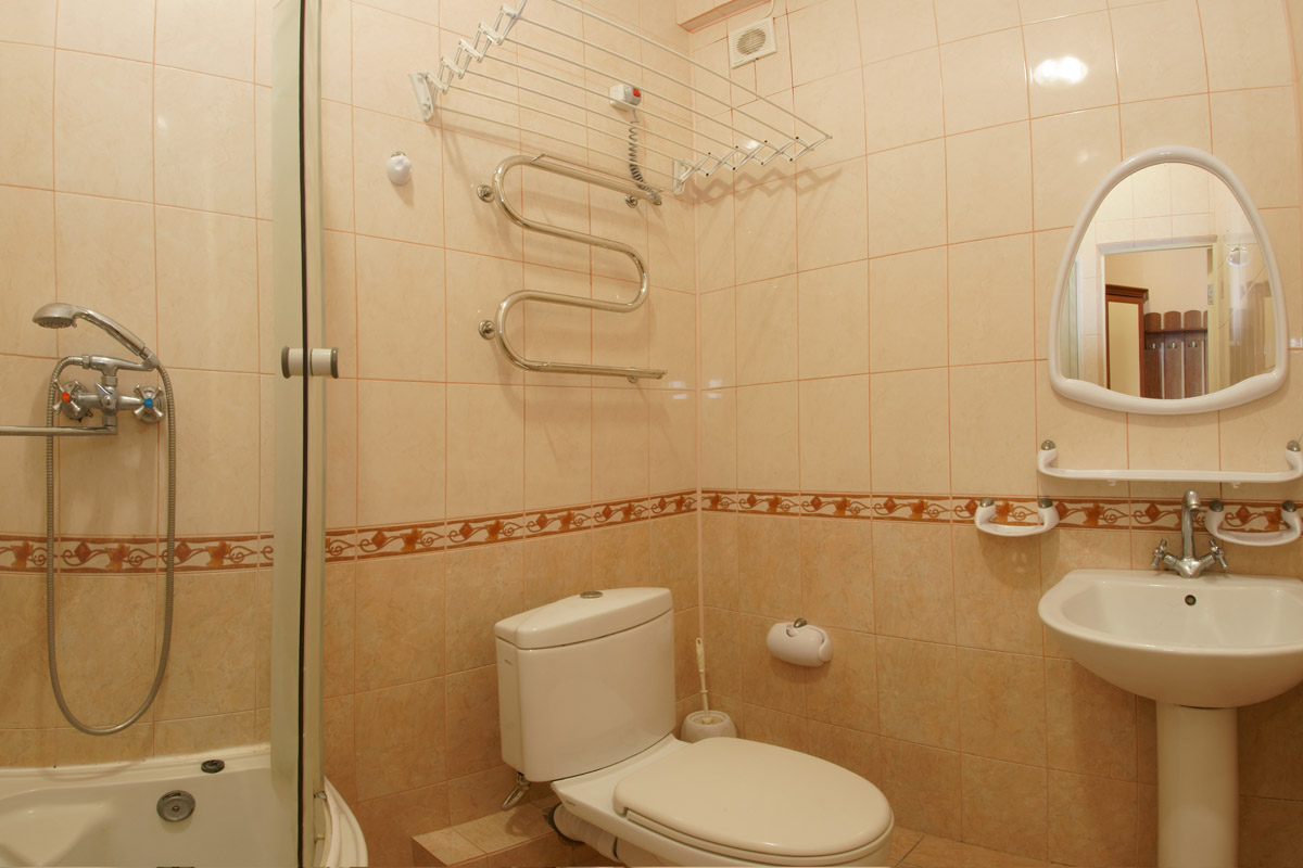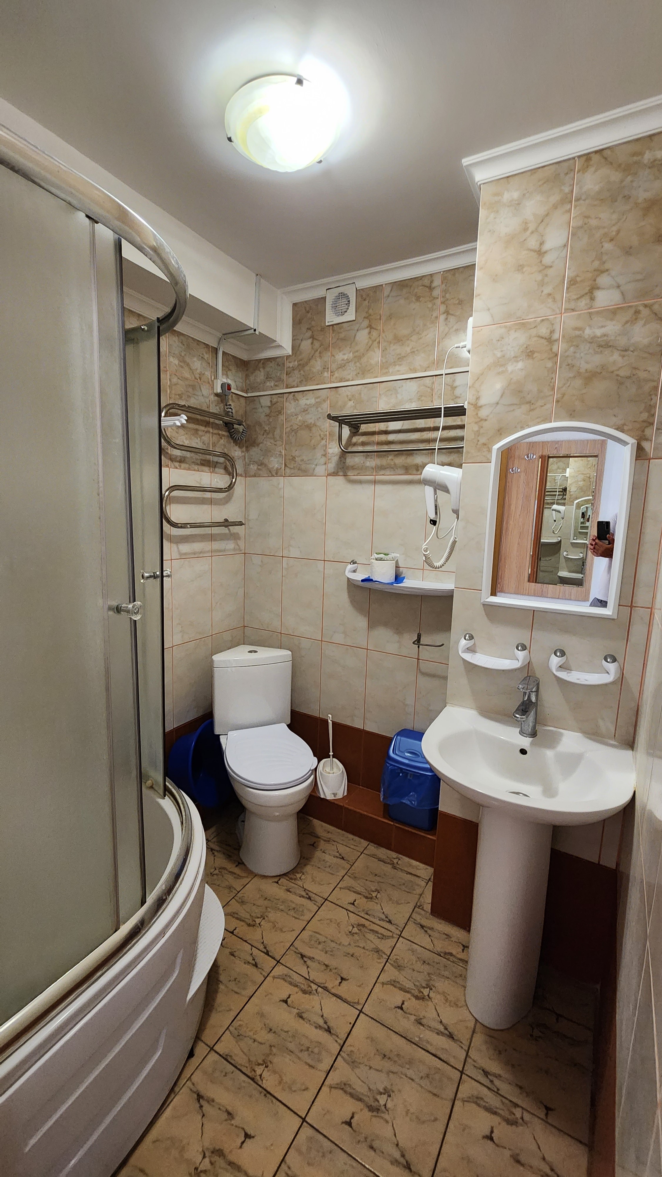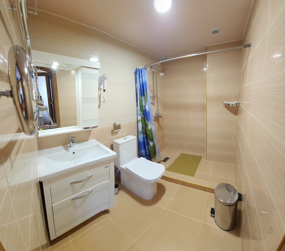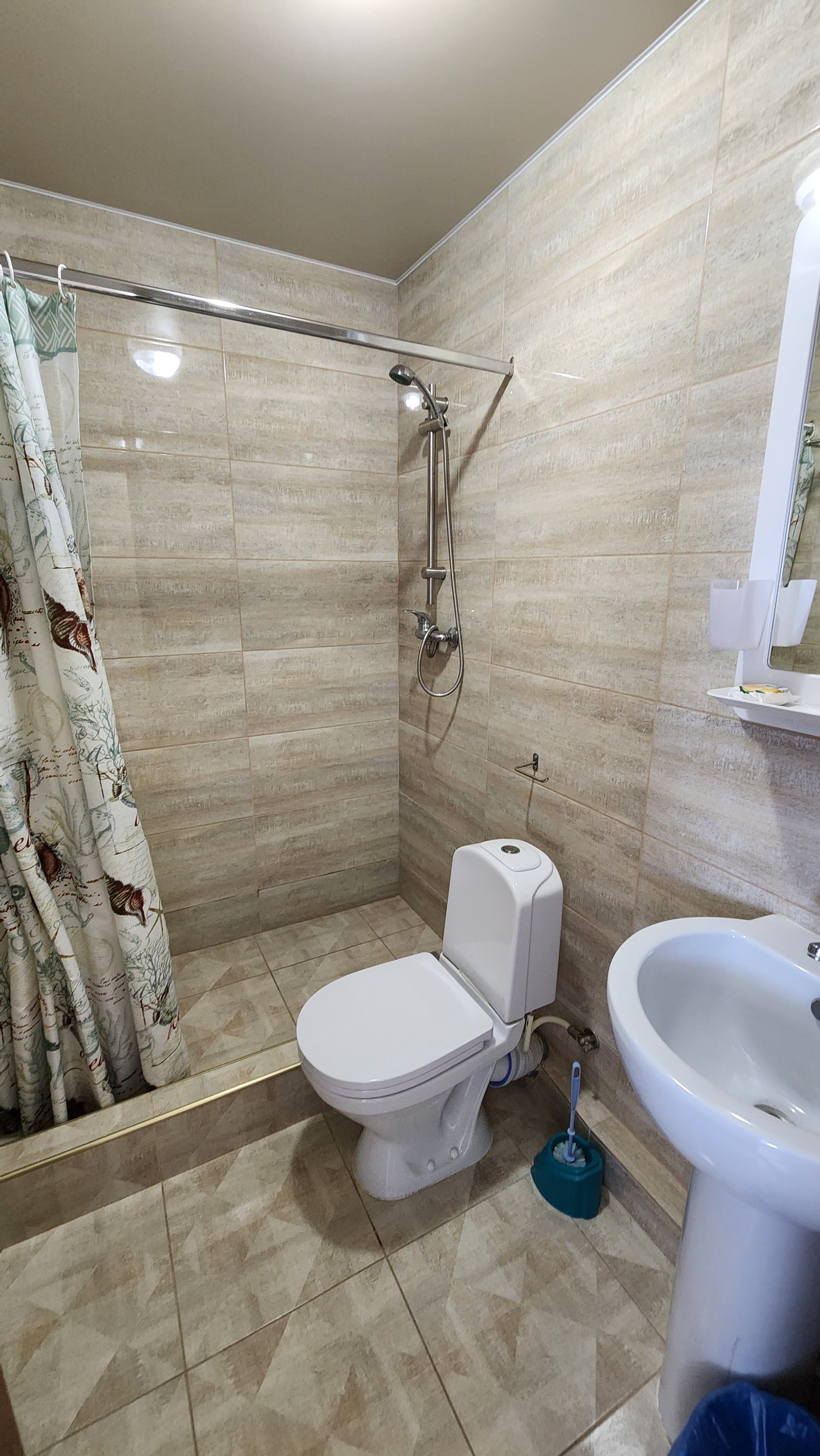 Во всех номерах есть санузел с душем, прикроватные тумбочки, зеркало, холодильник, телевизор.