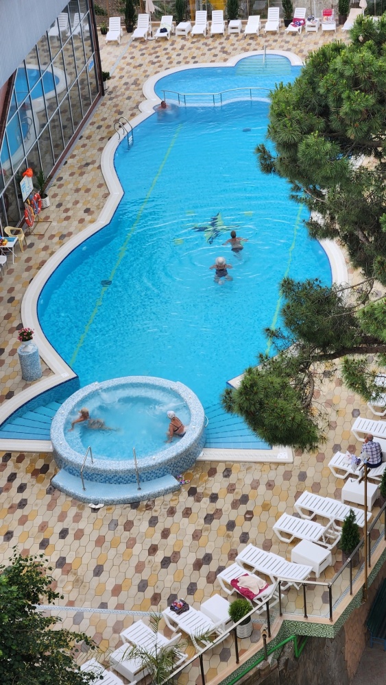 Отличный санаторий, чтоб полечить нервы, подышать морским воздухом. Питание нормальное, наедались. Возле санатория открытый бассейн, вечером плескаться можно, когда лень идти на пляж. В целом, отдыхом довольна!
