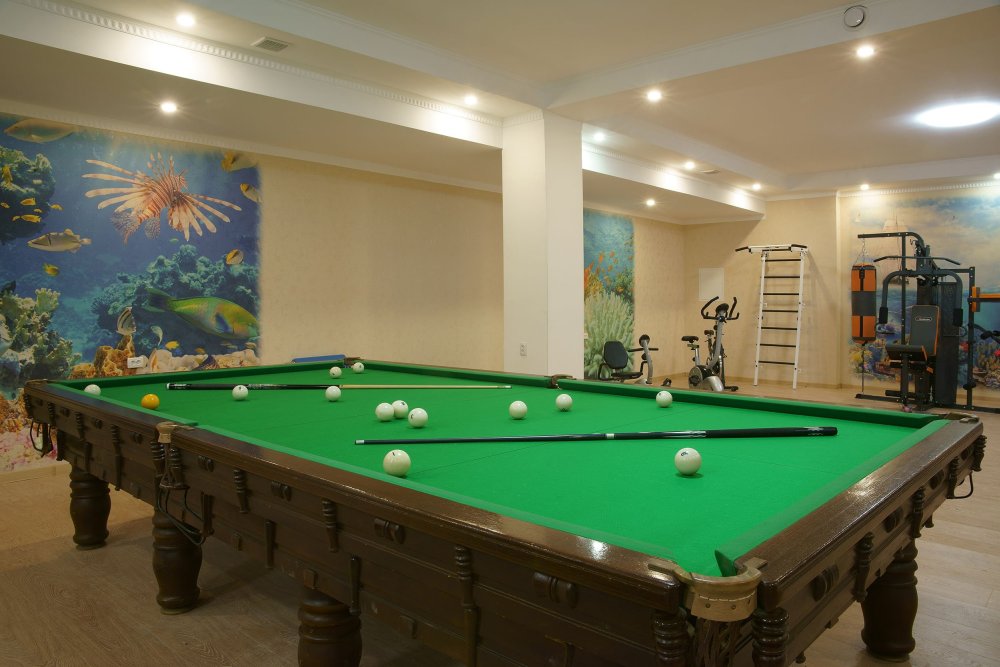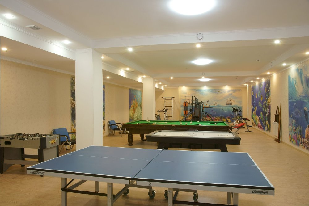 Для активного отдыха: строится небольшой открытый бассейн (открытие — лето 2022), закрытый бассейн с пресной водой (600 куб. м , глубина от 1,5 до 2,5 м), тренажерный зал, спортплощадки (инвентарь — за доп плату), бильярд.