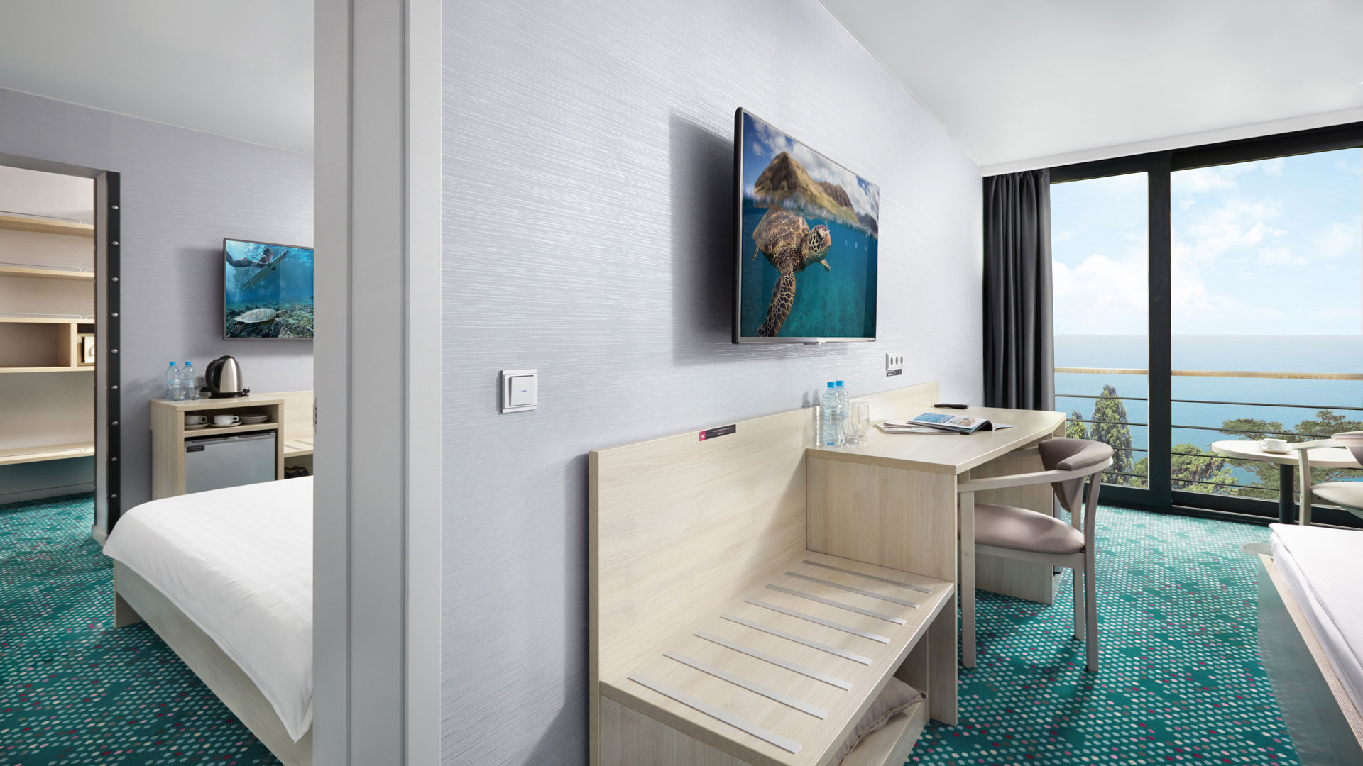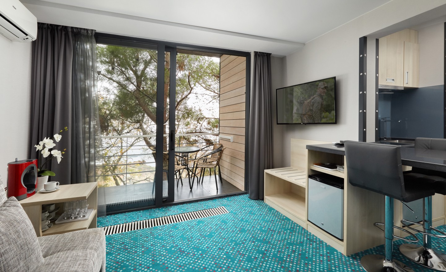 Люкс двухкомнатный с двуспальной и двумя односпальными кроватями / раскладными креслами (YALTA INTOURIST GREEN PARK) – 45 кв. м.