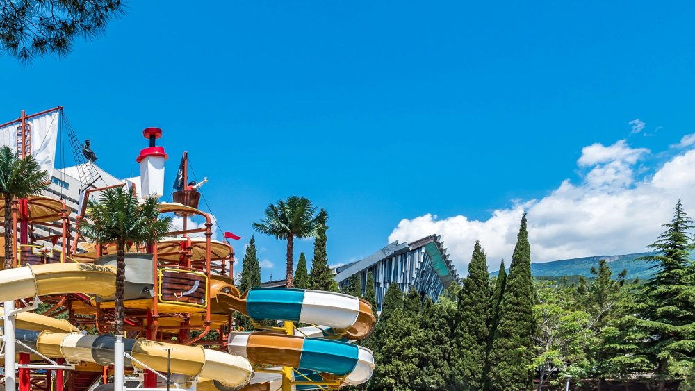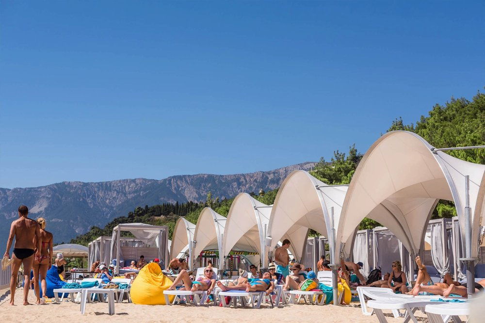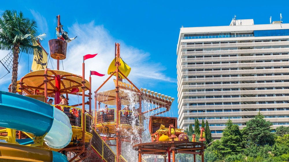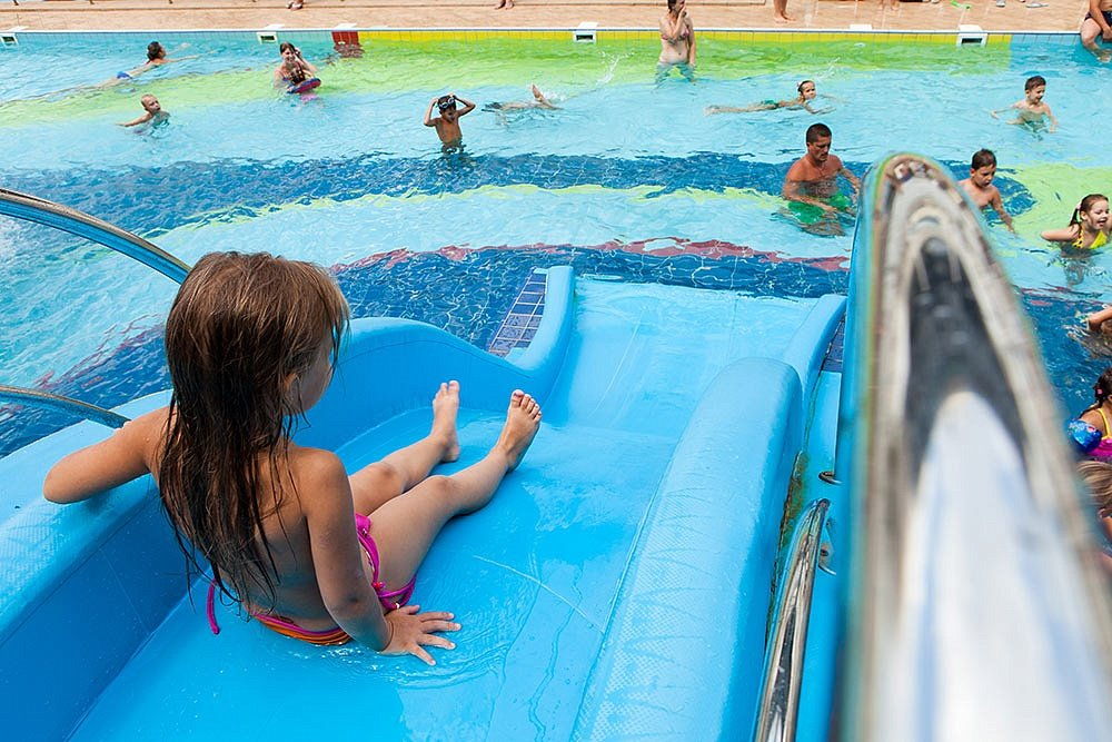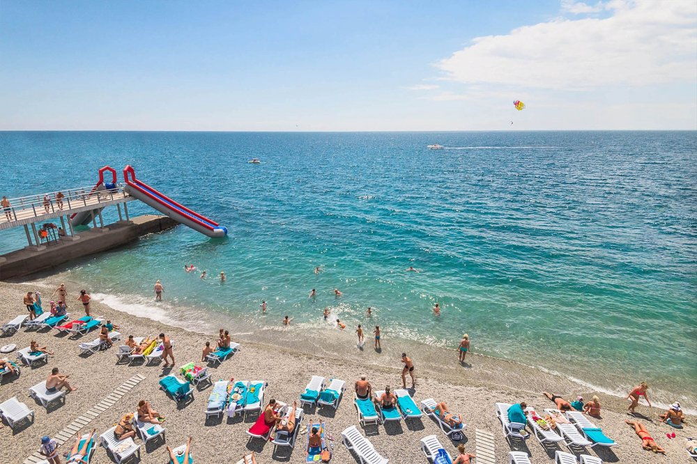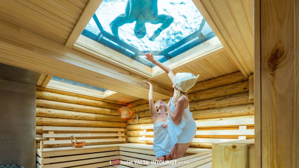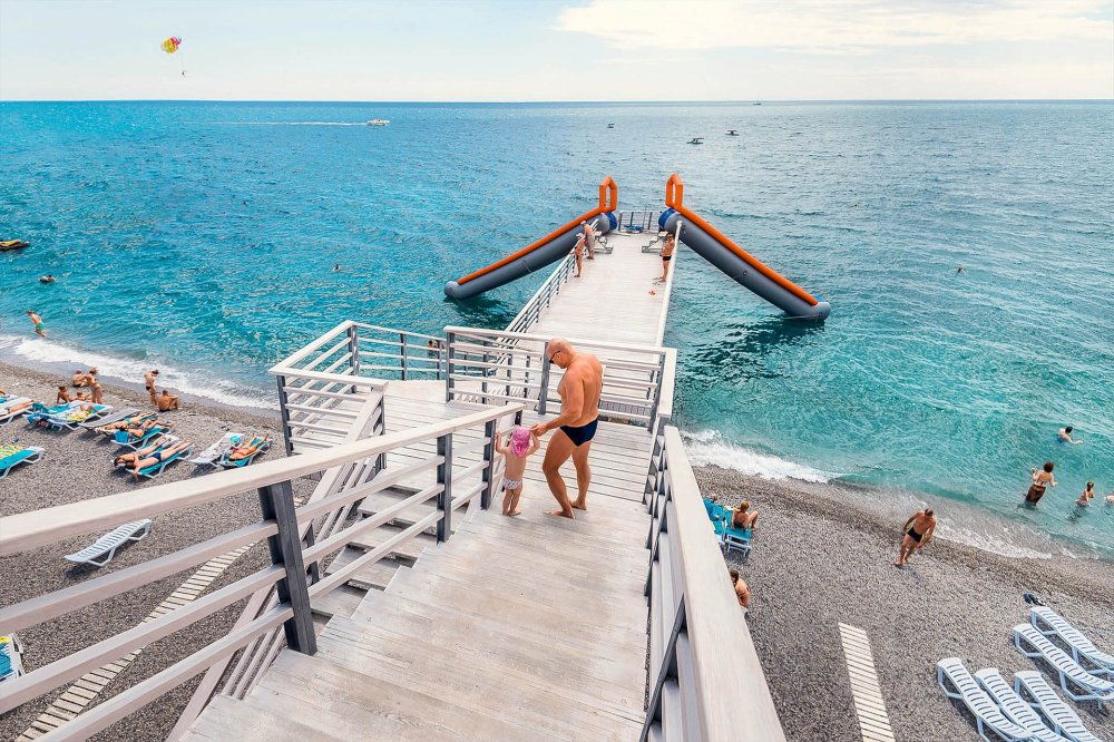 - Крупнейший в Крыму бассейн с подогреваемой морской водой, аквапарк, детский бассейн с водными аттракционами, бассейны для прыжков в воду и панорамный с баром.