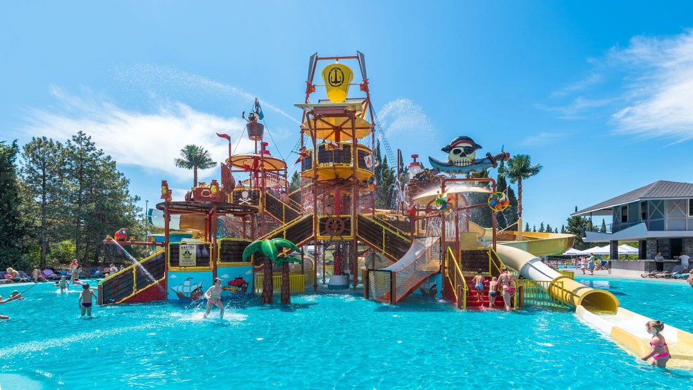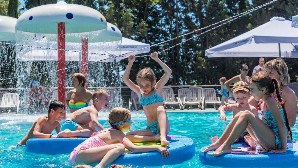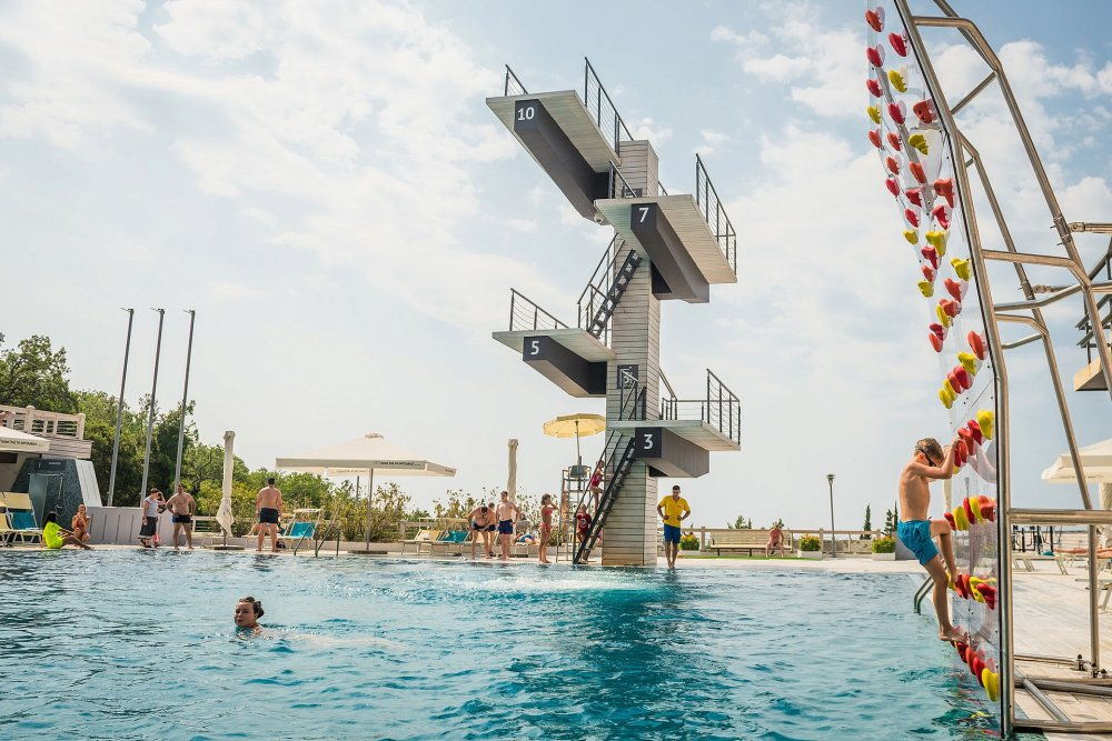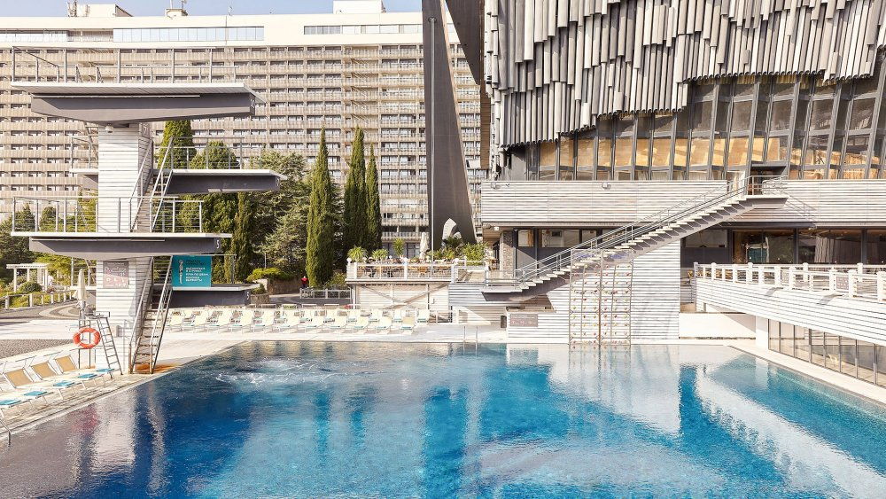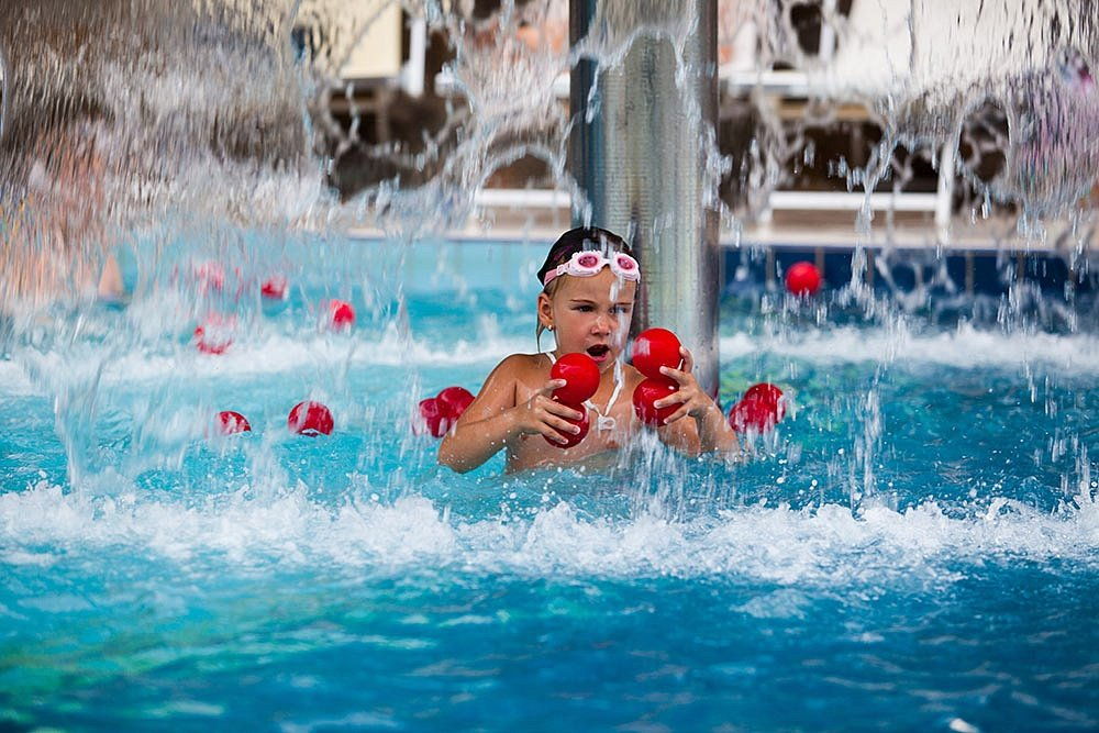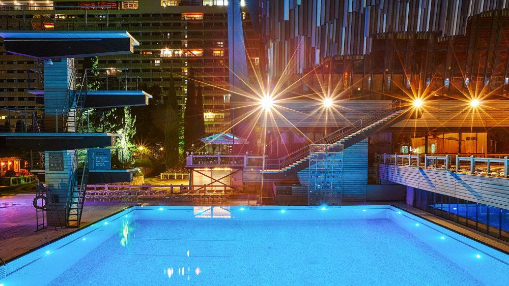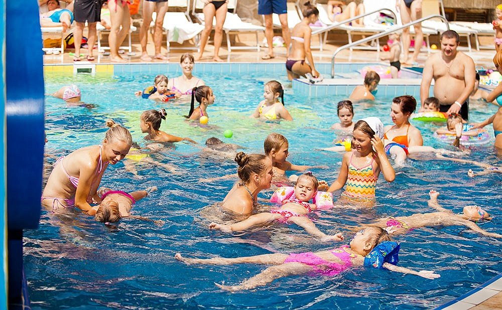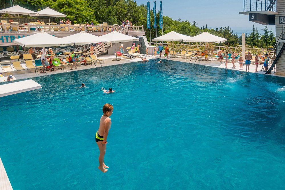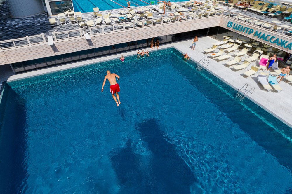 — посещение всех бассейнов на территории (Олимпийский 50-метровый открытый бассейн с подогреваемой морской водой (круглогодично),   профессиональныйпрыжковый бассейн, переливной панорамный бассейн Инфинити с pool-баром и гидромассажем, детские бассейны),