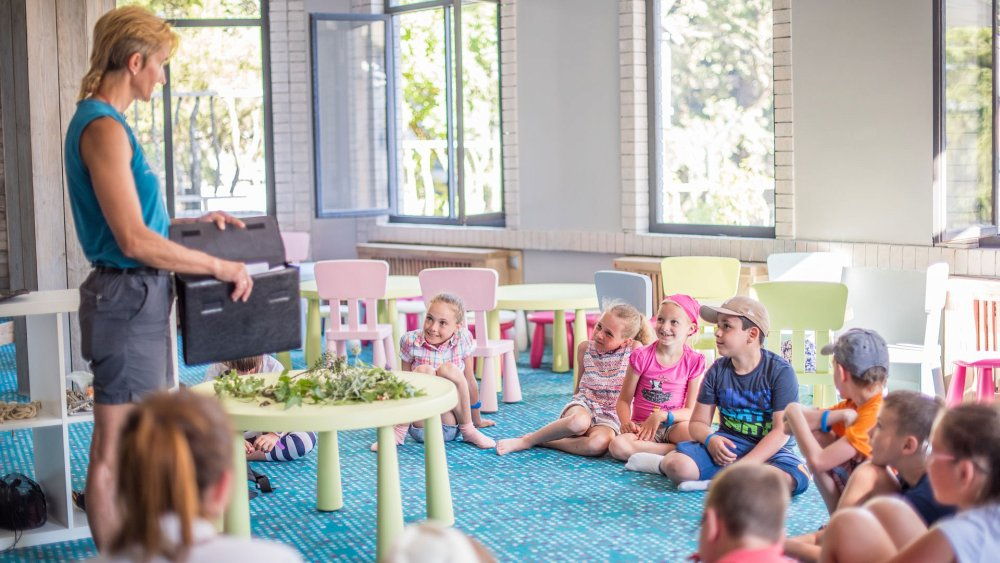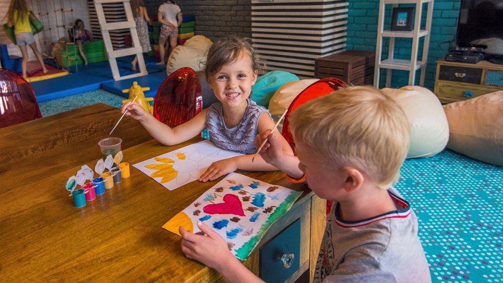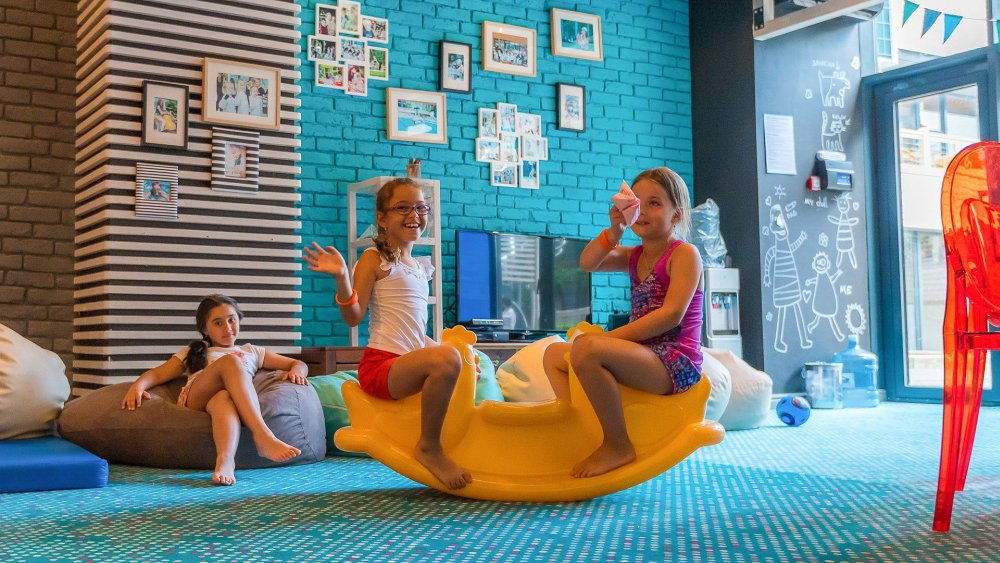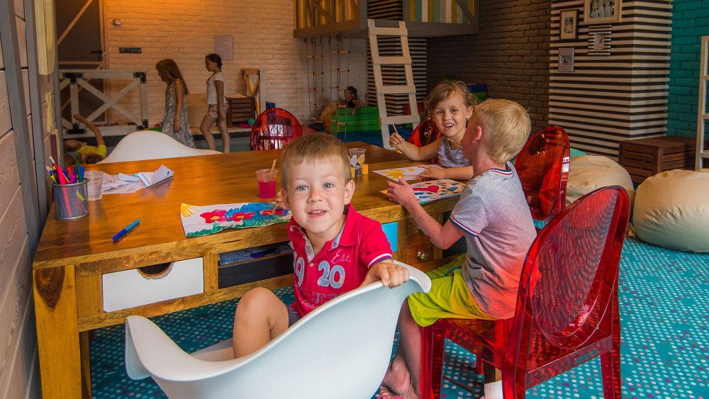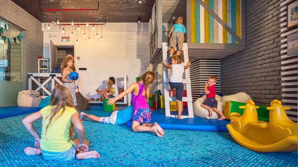 - Для детей создана уникальная игровая зона, где малыши развивают свои творческие способности и воображение, занимаются спортом, актёрским мастерством, кулинарией, танцами и изучением языков.