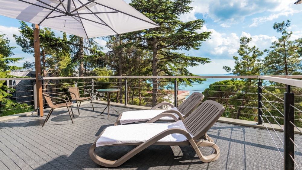 Панорамный фитнес-центр, где с высоты птичьего полёта откроется захватывающий вид на Чёрное море, горы и Ялту.