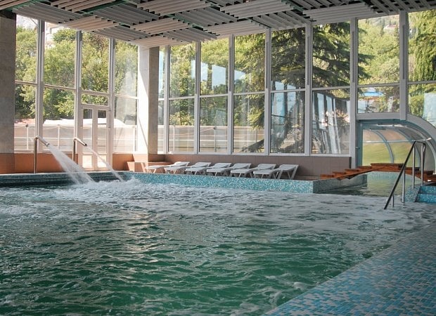 Крытый бассейн с морской водой, находится в медицинском центре «Мисхор». Сеансы с включением водных тренажеров оплачиваются дополнительно в кассе медицинского центра.