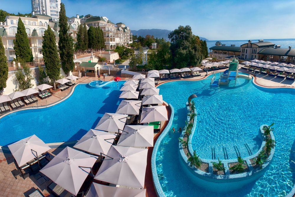 С территории курорта открывается потрясающий вид на ялтинскую бухту и на морские просторы до легендарной горы Аю-Даг — одним из символов Крыма.
