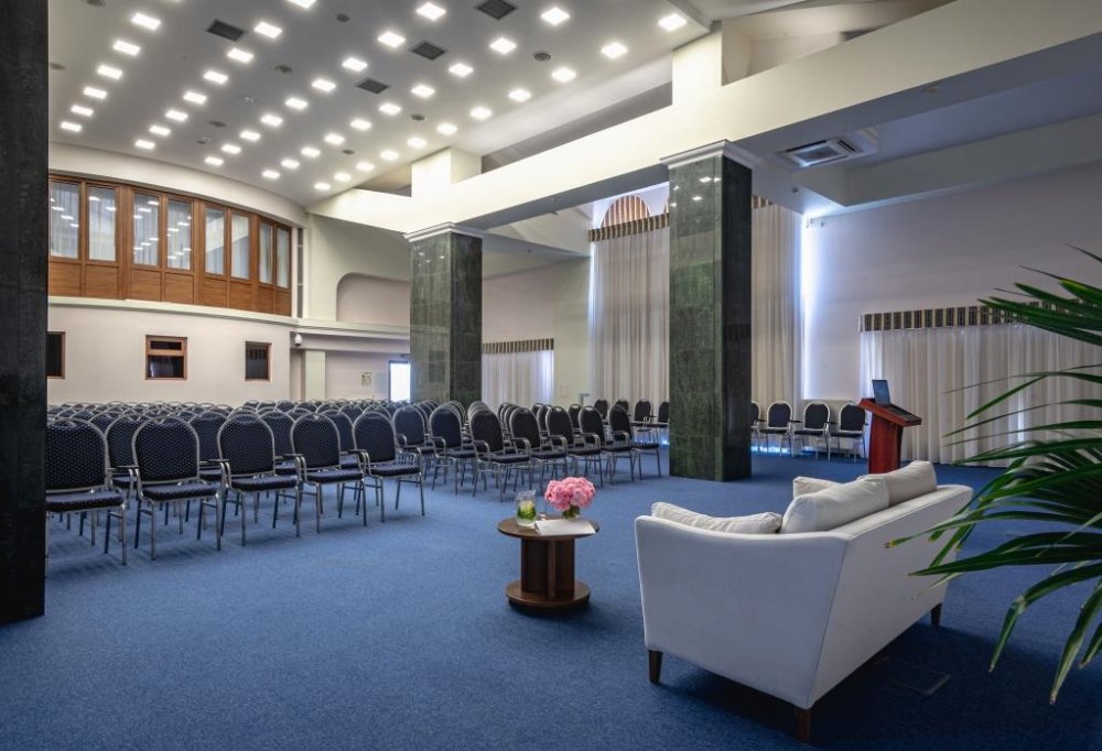 Конференц-зал «Таврический» на 200 мест (площадь около 300 кв.м) с системой синхронного перевода. В наличии имеется: мультимедийный проектор- 5500 люмен; мультимедийный экран 6×2.4м; 2 видеокамеры подвижные для трансляции на проекционном экране, выступающего из зала; 1 видеокамера, направленная на трибуну докладчика; инфракрасные передатчики для передачи аудио сигнала синхронного перевода на 150 инфракрасных приёмников; стол президиума, оснащённый 5 микрофонами и 3 мониторами; 2 трибуны докладчика с 2 микрофонами; возможность записи аудио сигнала на мини CD и аудиокассету; возможность записи видео сигнала на VHS и CD в формате DVD MPEG; шторы blackout, управляемые электро приводом; 2 радиомикрофона, расположенных в зале; УМЗЧ 100 Вт; 9 динамиков зч, расположенных по периметру посадочных мест; возможность воспроизведения видео и аудио сигналов с DVD VHS и PC из пультовой и PC с трибуны; радиомышка для удобства проведения презентаций.