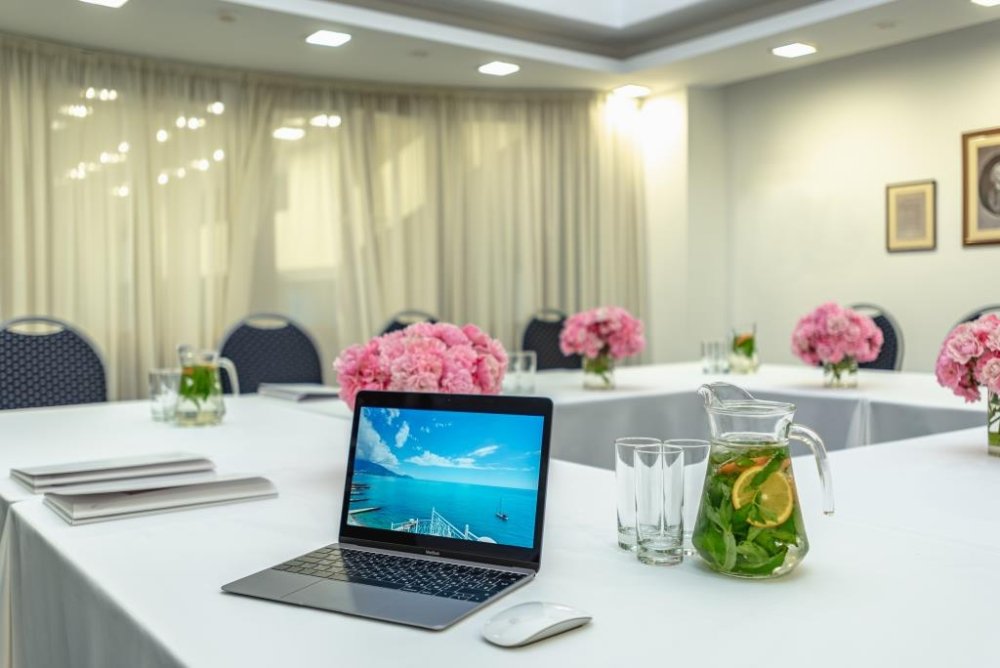 2 зала для переговоров на 8 и 50 мест соответственно, холл для кофе-брейков, аренда оборудования для проведения конференций