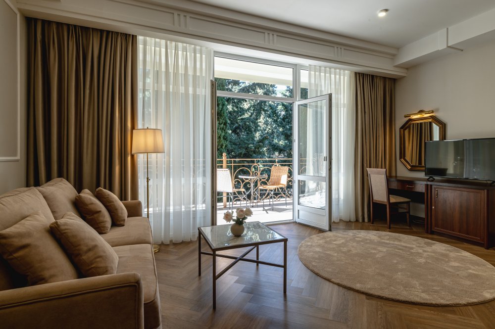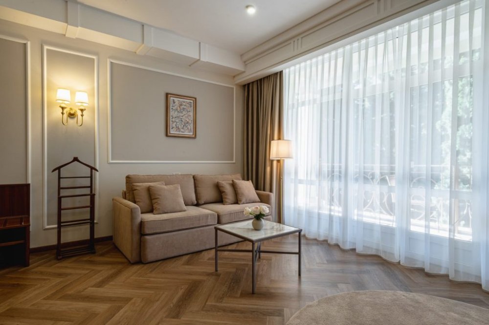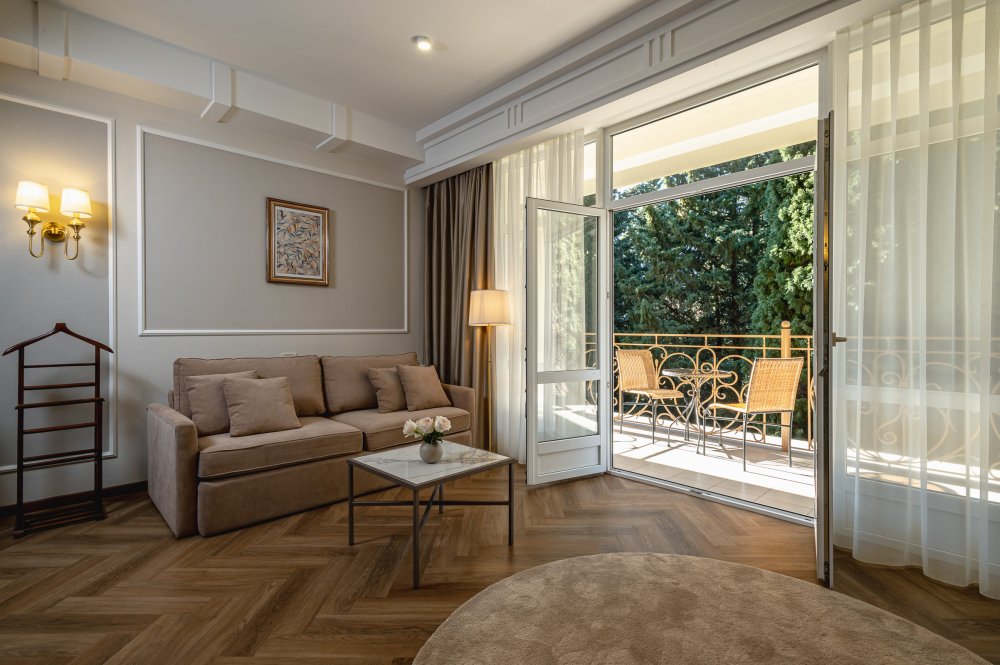 Отель расположен в бывшей царской резиденции, которая принадлежала Великому князю Дмитрию Константиновичу. Со всех сторон отель окружен историческими объектами, загородными резиденциями и дворцами царских семей (Ливадийский и Воронцовский).
