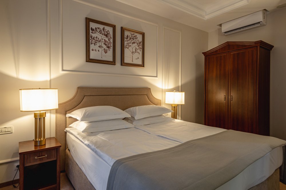 Основной корпус – 6 этажей, оборудован лифтами, рассчитан на 171 номер.
