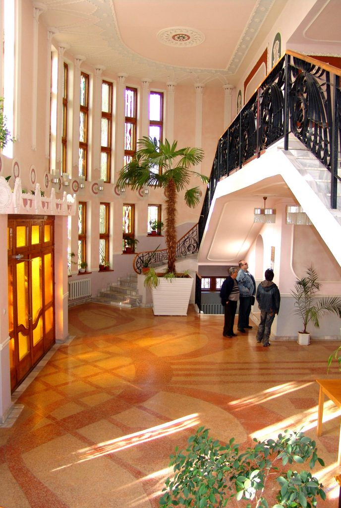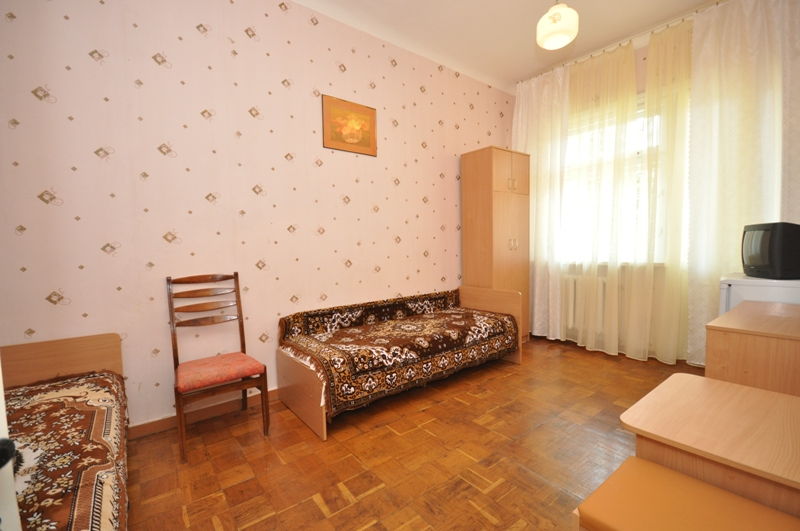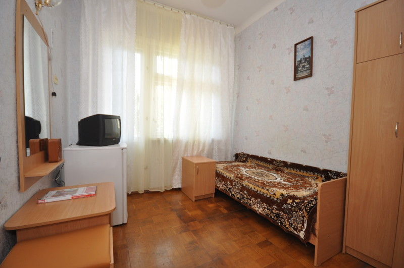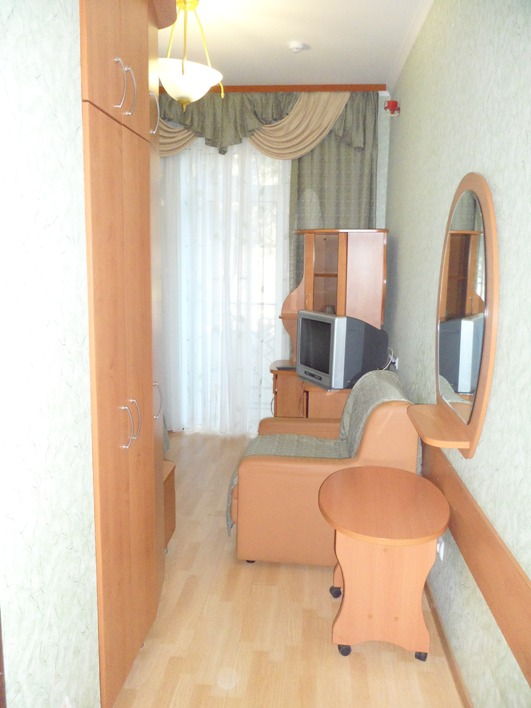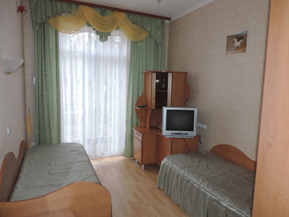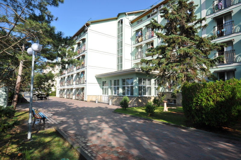 Отличный санаторий! Вежливый персонал. Великолепная диетическая кухня! Настолько великолепная, что ты не ощущаешь, что это диетическая еда). Номера, хоть и простые, но очень уютные и чистые. Через день уборка помещения. Каждые 5 дней смена белья и полотенец. Нам достался номер без кондиционера и без вентилятора, но даже это не испортило нам отдых. В номере есть телевизор, холодильник. В корпусе чайник(один на всех, но можете себе купить лично и привезти) и утюг. На территории санатория есть кафе. 2 медкорпуса, бассейн. Отличный дендрарий на территории. Вечерами дискотеки и фильмы ( как говорится-кому — что). Пешком до набережной 15 минут. Также минут 15-20 неспеша до пляжа. От санатория 6 раз в день бесплатно отвозит и привозит автобус. Рядом трамвайная остановка. Чуть дальше — автобусная.