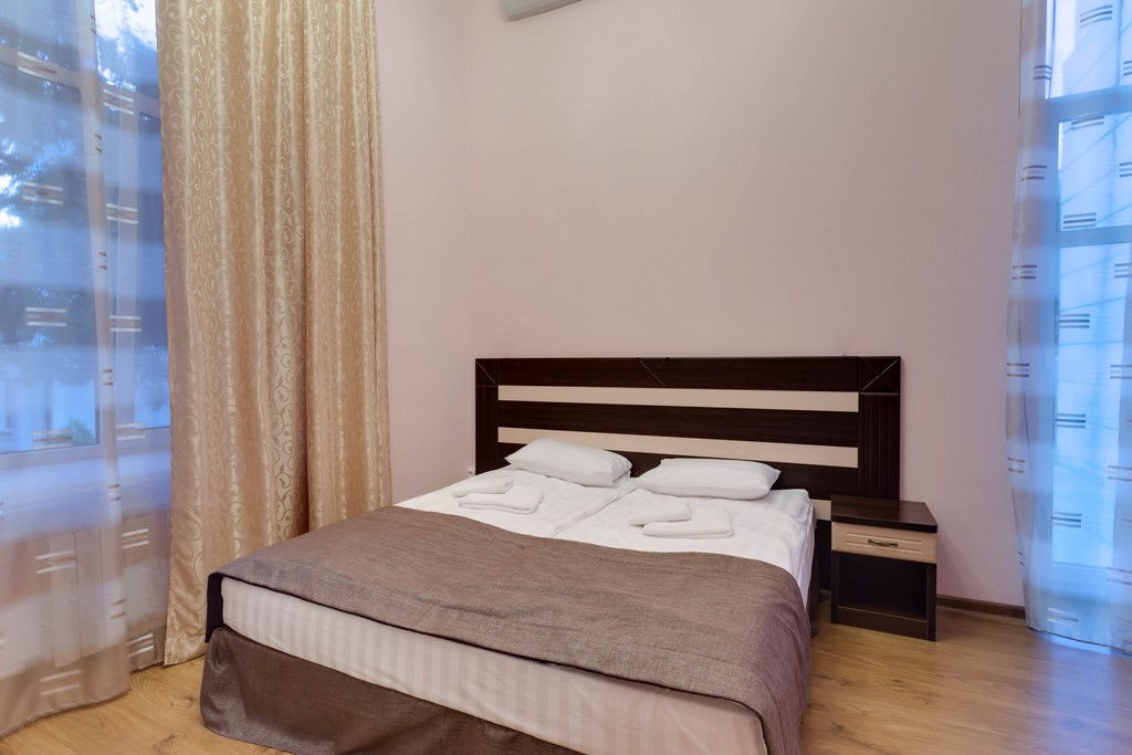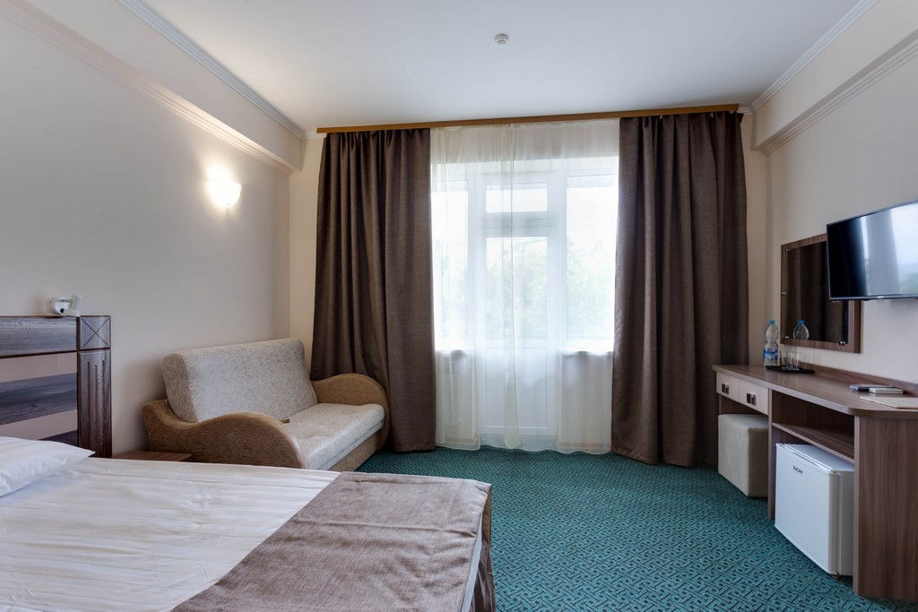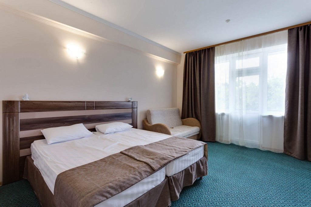 6. Отличный санаторий. Красивая и ухоженная территория, пляж, бассеин. Хорошая лечебная база. Хорошее и вкусное питание(Шведский стол). Организован разнообразный досуг для постояльцев. Отзывчивый и вежливый персонал и врачи. Хорошие чистые номера со всеми удобствами. Имеется автопарковка на территории.
