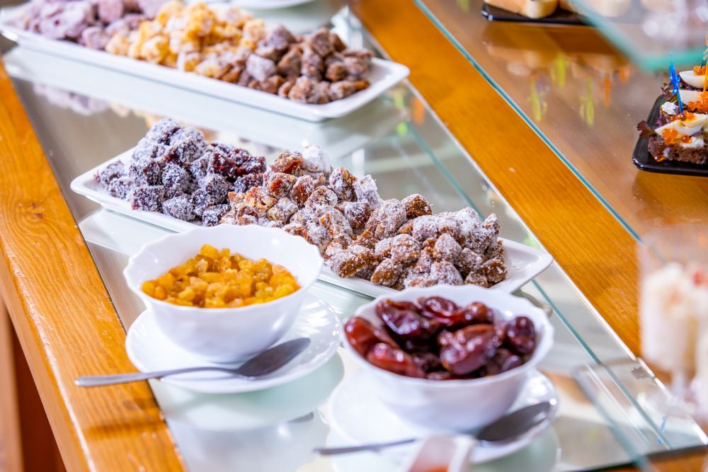 полный пансион «шведский стол» или диетическое меню с делением на лечебные столы. Во время каждого приема пищи подают- фрукты, алкогольные и безалкогольные напитки местного производства.