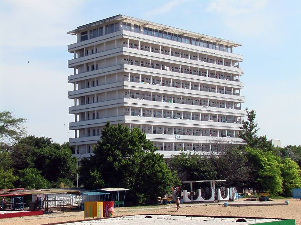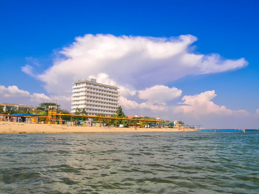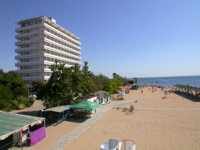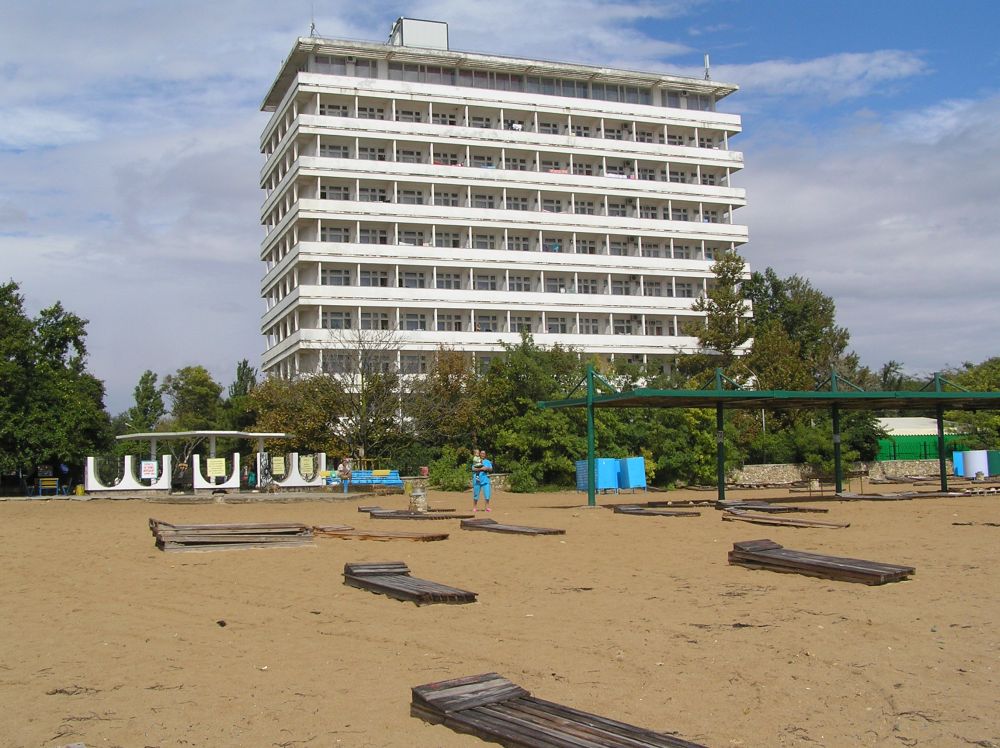 Это прям санаторий-санаторий. Находится на берегу всесоюзной здравницы 🙂 Огромная территория, много хвойных, цветы, все цветет и пахнет! Чистейший степной соленый воздух! Свой большой пляж с навесами, правда заход в воду песок+ камни. Путевки с лечением: ЛФК, ванны, разные виды физиотерапии, массаж, грязелечение, фитотерапия- все для того, чтобы почувствовать себя в Советском Союзе) Питание здоровое, санаторное. Это значит — диетическое, не ждите картоху фри со свиными рёбрами в майонезе! Несколько видов первых, вторых блюд, гарниров, фрукты-овощи местные, вкусные. Сам выбираешь, чего и сколько сьесть. Кормит компания «ЧП Швед-Сервис», очень приятные и расторопные ребята, трудятся как пчелки! Огорчает только жадность и дикость людей, нагребающих столько, что невозможно съесть. Потом еще и вынести это все пытаются. Выглядит, это, конечно, не очень.