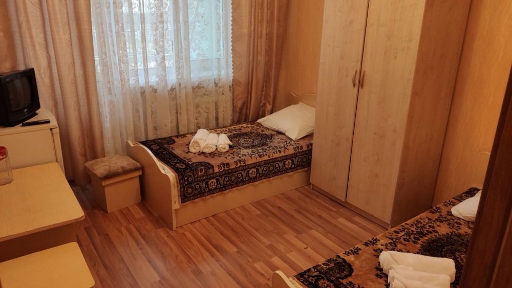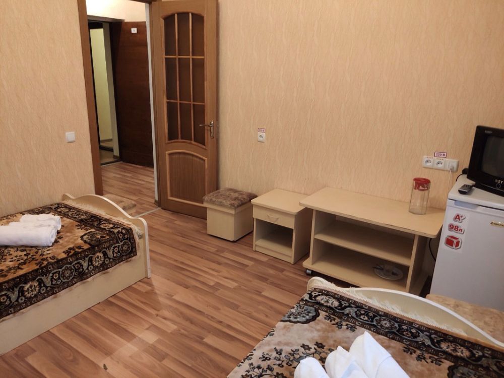 Номера: Всё время жили в 7 корпусе(10-ти этажный). В номерах очень просто, только самое необходимое(кровати, тумбы, холодильник, телевизор, столик и два пуфика). Постельное белье чистое. Очень приятные горничные. В номерах нет чайников, что немного не удобно. Отдельное внимание заслуживают встроенные шкафы (со времен СССР), уж дюже они скрипучие!!! Всегда в курсе, когда соседи достают или убирают одежду в шкаф. Сотрудники корпуса очень приветливые, на любую просьбу реагируют моментально. В корпусе начали ремонт номеров.