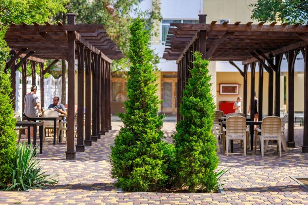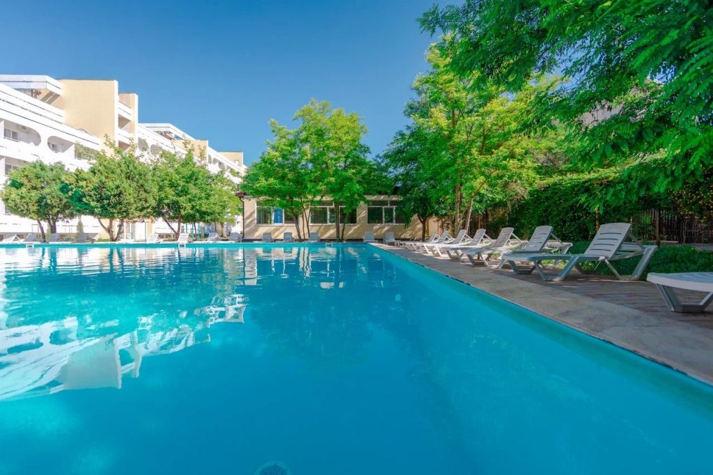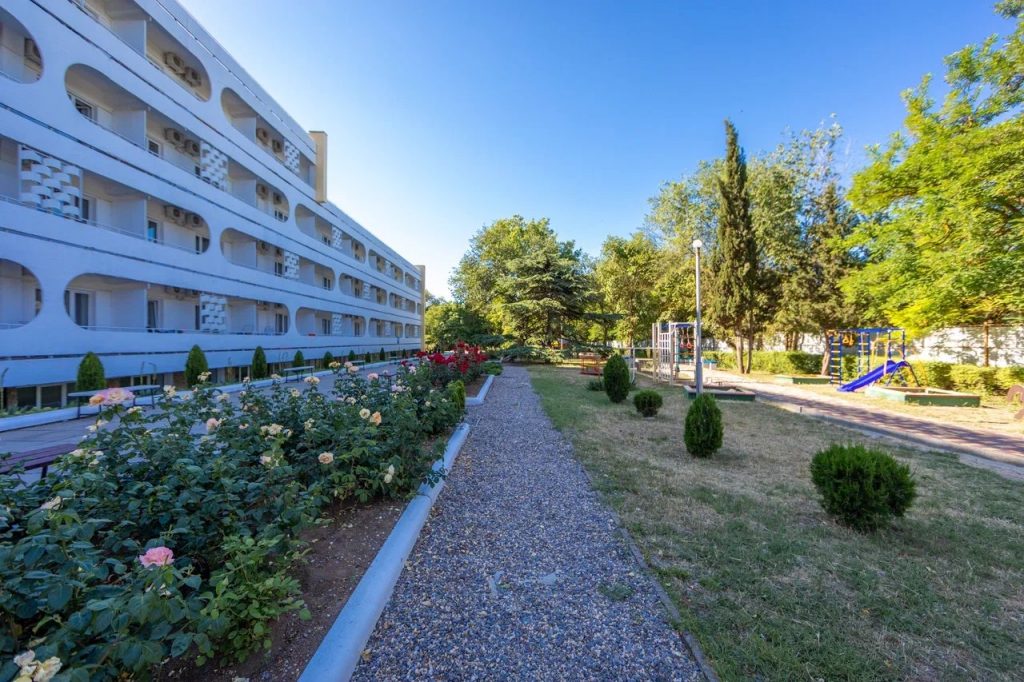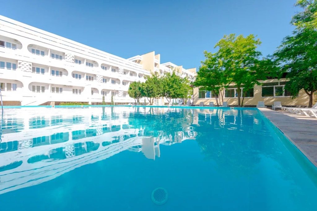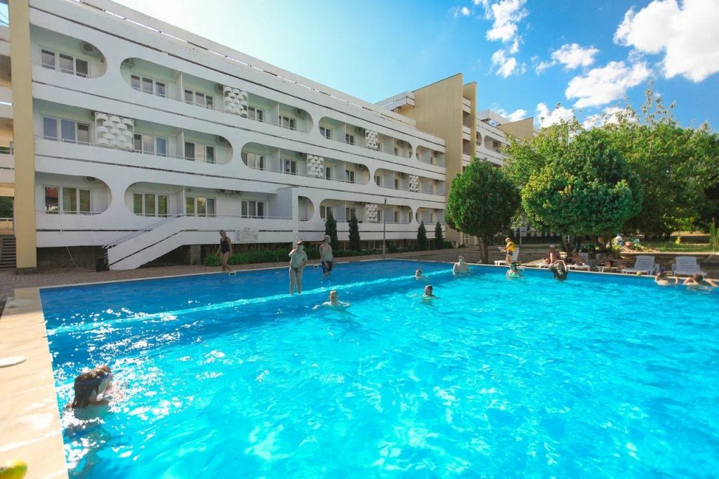 Отдыхали в августе 2023. Вполне достойно. Персонал отзывчивый и доброжелательный. Ежедневная уборка.Питание без изысков, но все свежее и достаточно вкусное. Овощи фрукты постоянно. На пляже конечно проблема с лежаками под навесом, много народа приходит просто с улицы. В бассейне нет лесенок для входа и выхода. Вносит неудобство отсутствие перегородок на лоджиях между номерами. Поставить перегородки из поликарбоната я думаю не составит большого труда, но комфортность проживания явно улучшится. На территории постоянно работают рабочие садовники, но состояние газонов и дорожек желает лучшего. В целом проживание за эти деньги видимо соответствует цене. Большой плюс- это тихий район города,практически без движения транспорта и шаговая доступность пляжа. Вода на пляже с утра имеет тенденцию к образованию пены, видимо откуда то наносит сбросы очистных, потом нормально.