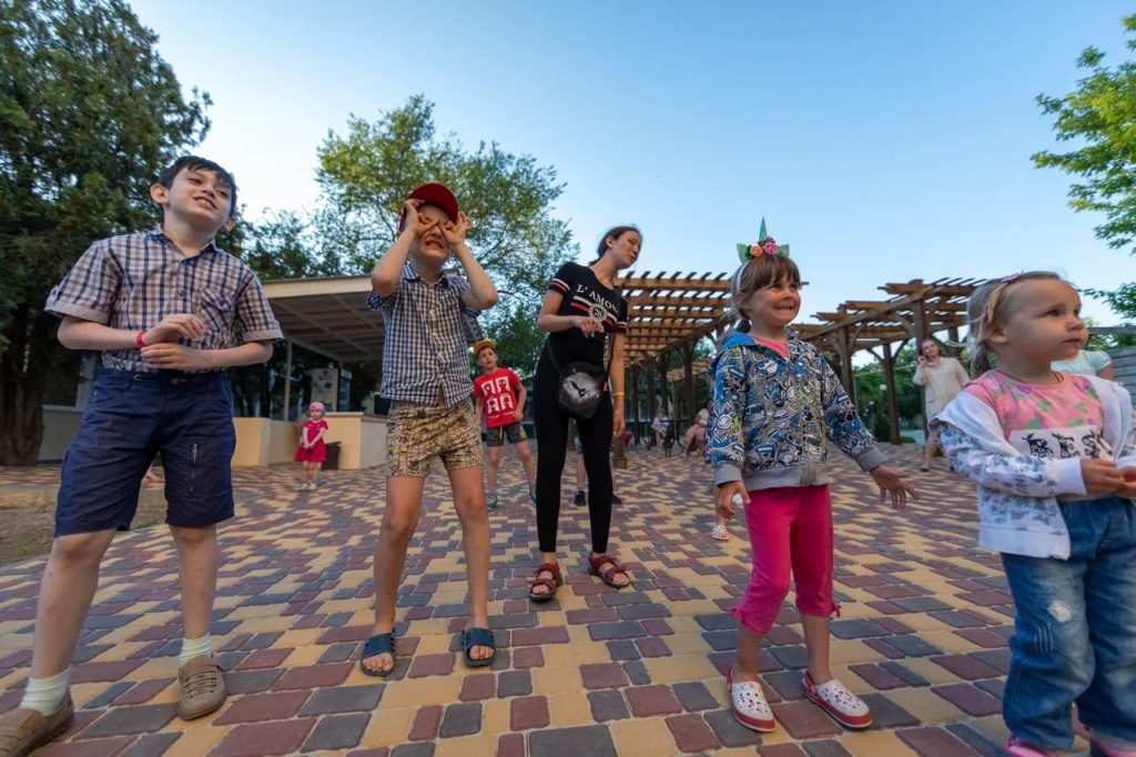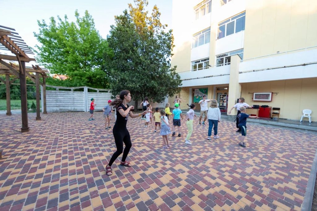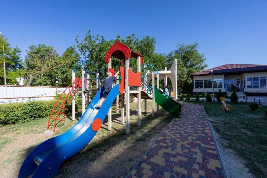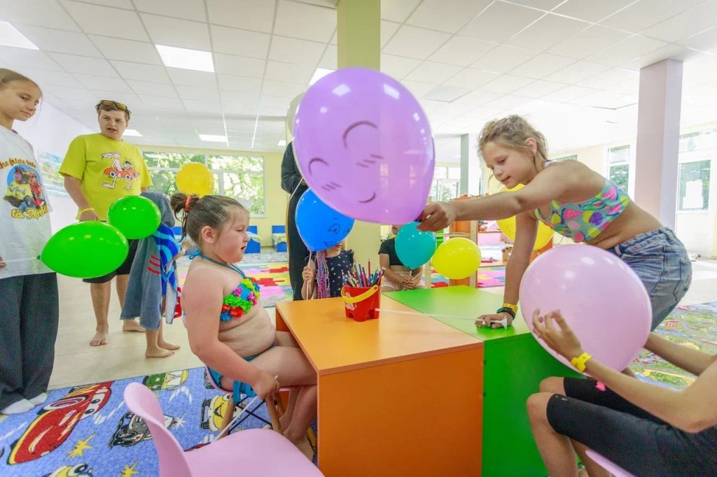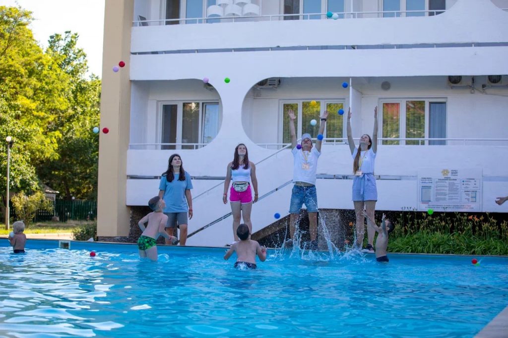 Детский мини-клуб (от 3-х до 12-ти лет) с воспитателем. В отдельном просторном здании находится детский клуб, где собрано большое количество разнообразных игрушек и развивающих игр. В детской комнате находится воспитатель, который под наблюдением родителей проведет с детьми увлекательные мастер-классы, развивающие игры, веселые игры с безопасными красочными модулями. Здесь в отдельном помещении оборудован кинозал с большим экраном и проектором. Для других культмассовых мероприятий есть летний шатёр (размеры 24 м. *12 м.)