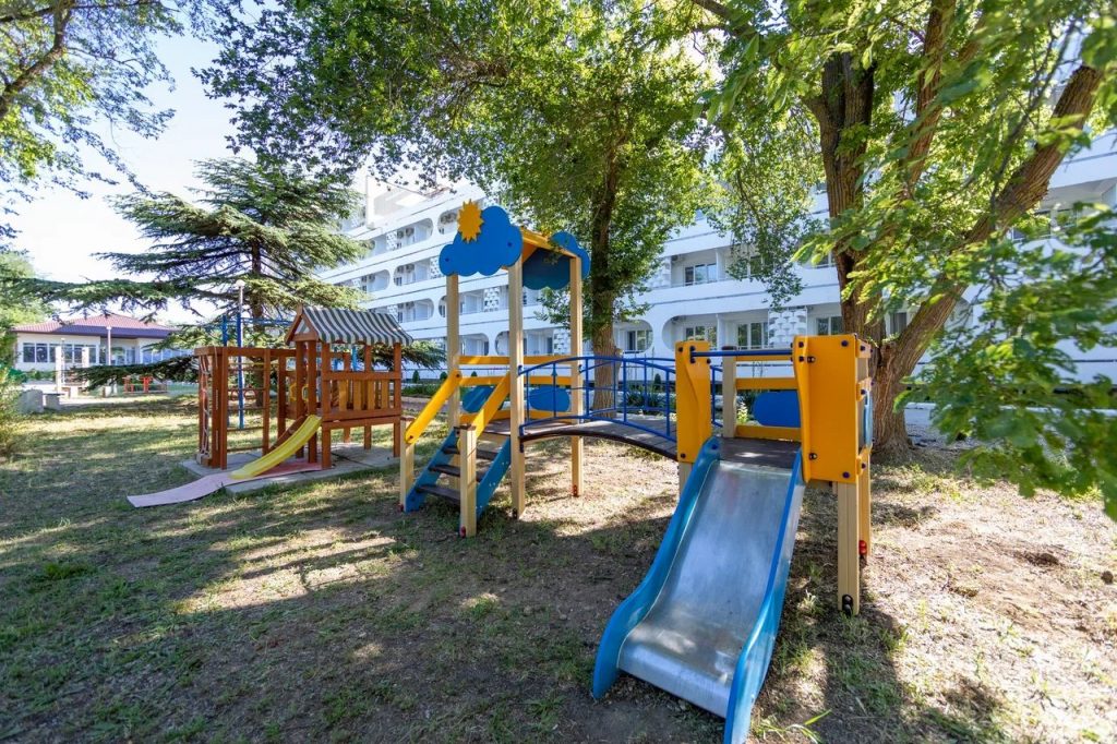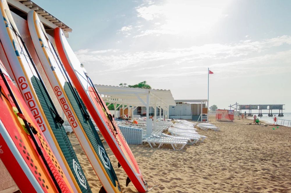 Пользование собственным песчаным пляжем, который находится в пешей доступности от отеля — в 200 метрах, оборудован всем необходимым для пляжного отдыха: теневые навесы, шезлонги, душевые, туалеты, пост спасателя и медицинский пост. Стоит отметить, что безопасный пологий вход в море особенно актуален для пляжного отдыха с детьми.
