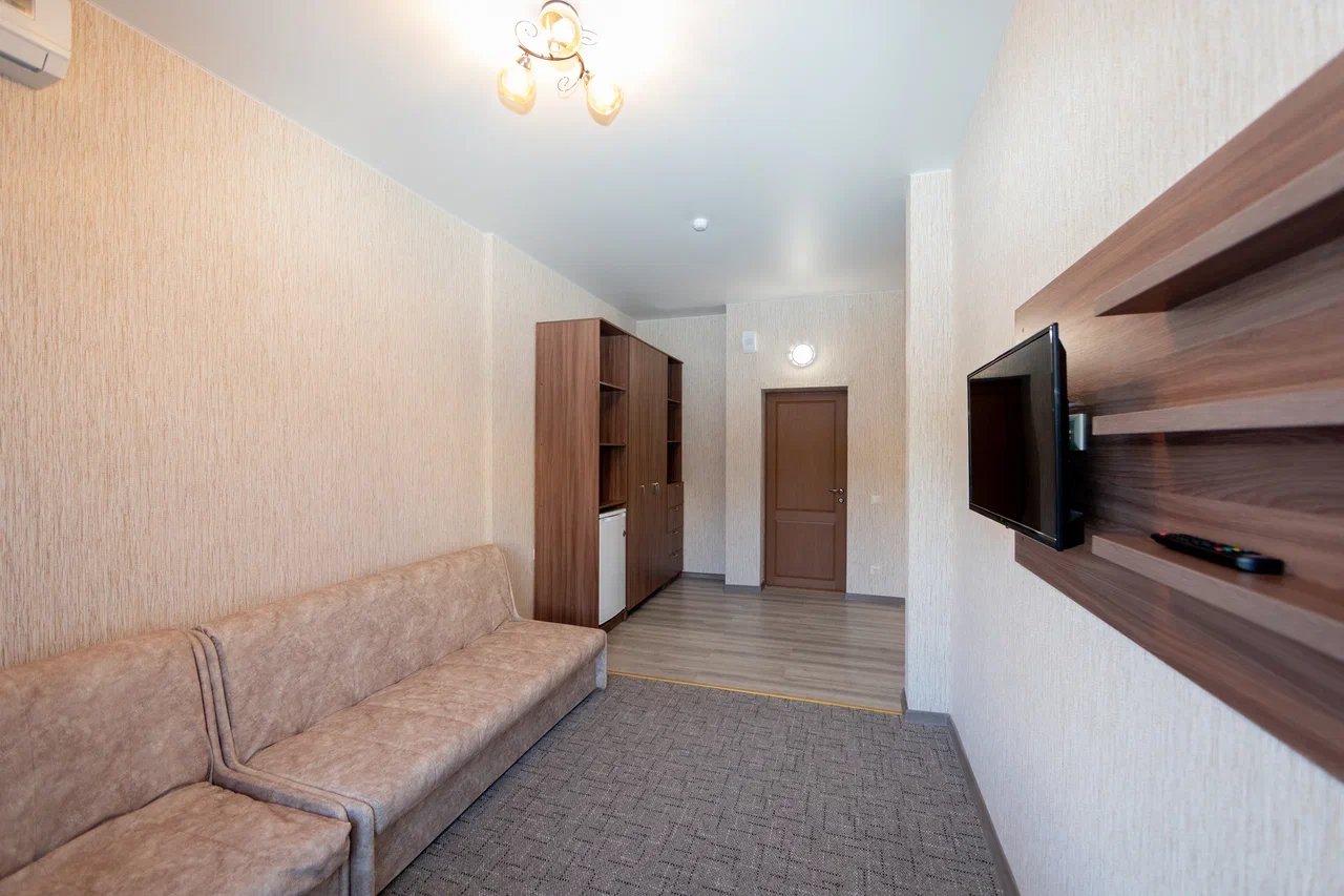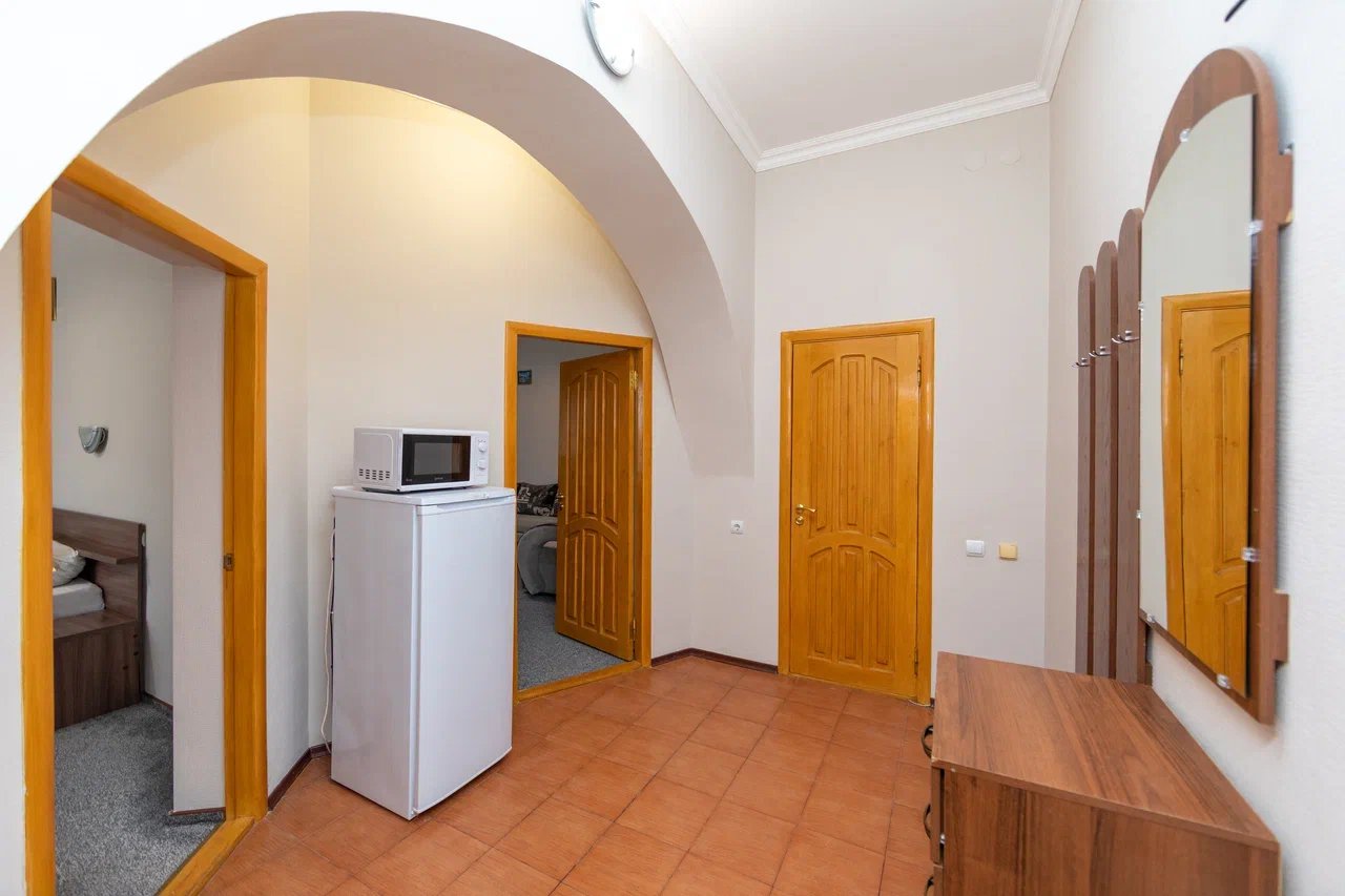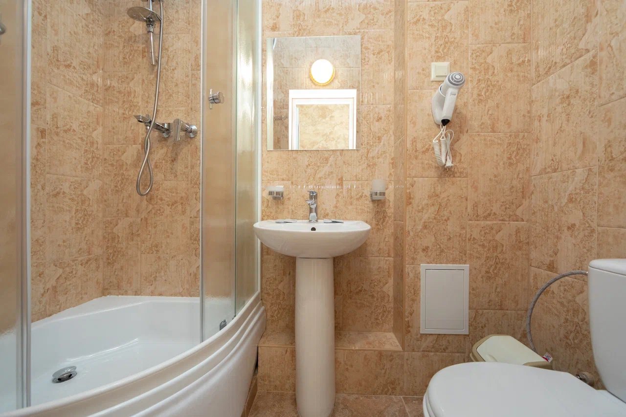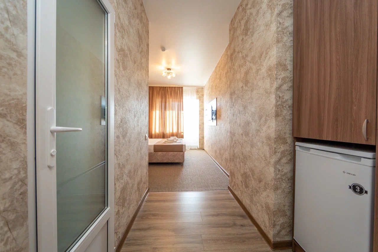 Отдыхали с 24.06.21 по 01.07.21, муж, жена и ребёнок 1,3 годика. Ставлю 5 звёзд, так как значительных минусов мы вообще не заметили. Наш номер находился на 4 этаже, есть лифт, заселили быстро, минут за 15, и не в 14.00, а в 13.00 (за это огромное спасибо администратору🤗). Сразу выдали нам браслетики на питание в парк отеле Романова. Кормят сразу скажу «на убой», на завтрак всегда каши, омлет, котлеты, мясная и сырная нарезки, овощи, сосиски и сардельки, на обед супы и гарниры, большой ассортимент мяса и салатов,всегда есть свежая выпечка, ужин тоже отличный. Хочу уточнить, что тех, кто приезжает по социальным путевкам кормят на территории отеля в шатре, а кто, как мы, питание шведский стол в отеле Романова. Также на территории отличный бассейн, каждое утро приходил парень, который очищает воду, вода в бассейне тёплая и чистая, рядом стоят лежаки, народу в бассейне не много. Ночью всегда тихо, слышимость в отеле средняя, вроде слышно, но ни как не мешает, это при том, что дочка спит чутко, она ни разу за ночь не просыпалась от посторонних звуков. Для дочки нам предоставили деревянную кроватку. Каждый день уборка, прибирали так себе, полотенце в ванной комнате не всегда меняли, а оно от влажности совсем не сохло, постельное белье за неделю поменяли один раз, вполне хватило. На балконе стоит сушилка для белья, но нет стульчиков, только в номере, приходилось выносить каждый раз. Кровать была двухспальная, не скрипучая, ремонт в номере на твёрдую 4+. Слабовата сантехника. Есть холодильник, только фена не хватало. До пляжа минут 5 спокойным шагом, ещё бы было хорошо, если бы пляж лучше прибирали, мусора много, окурки, палочки, пластмасса попадаются, а так всё отлично, лежаки всегда были.