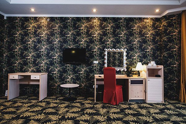 Номер «Красное море»: Смелое цветовое решение Design Deluxe Красное море вызывает у гостей бурю эмоций. Сочетание насыщенного серого, яркого бордо и приглушенного терракота погружают в атмосферу гламура и роскоши. Из номера открывается чарующий вид на море, способствующий отдыху и расслаблению.