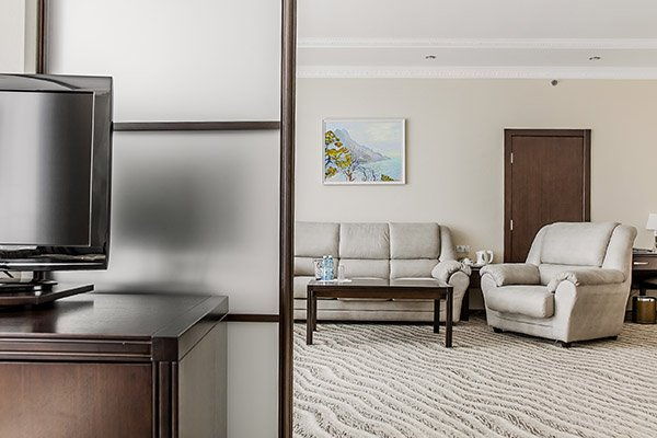 Номера Superior King укомплектованы двуспальной кроватью king size (180х200 см), комфортабельным раскладным диваном и креслами: