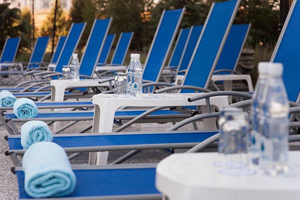 открытый бассейн (общая площадь 389 м2 предназначен как для взрослых, так и для детей. Глубина детской зоны не превышает 55 см, взрослой — 1,6 м); крытый бассейн (общая площадь 86,5 м2 с противотоком, глубина крытого бассейна 1,1 — 1,4 м); теннисные корты; тренажерный зал; волейбольная и баскетбольная спортивные площадки; пляжный футбол; аквааэробика (по программе медицинского СПА-центра); площадки для пляжного волейбола, анимация для взрослых; фитнесс-центр;