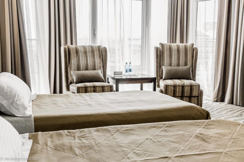 Номера Superior Twin укомплектованы стандартными раздельными кроватями 110–200 см, комфортабельным раскладным диваном и креслами: